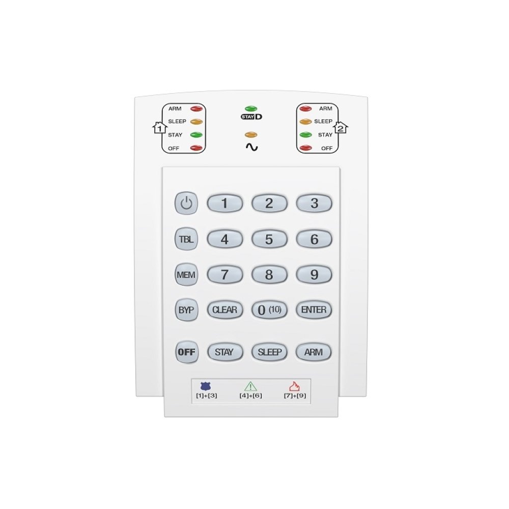 Tastatură LED - pe fir, 10 zone, verticala • compatibillitate: SP, MG, E65 Stay D • indicatoare separate de stare pentru 2 partiții armare totală/armare pe timp de noapte/armare parțială/dezarmare • afișază luminos zonele deschise • 1 intrare de zonă • posibilitatea setării independente a zonelor tip clopotel (chime) •7 butoane de acțiune tip one-touch • 3 alarme de panică activabile de la tastatură • se conectează la BUS pe 4 fire