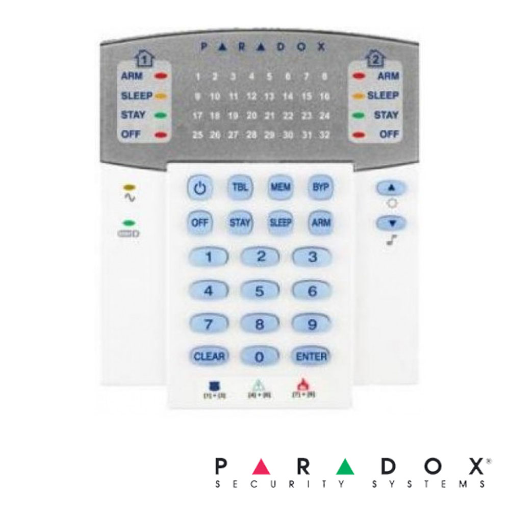 Tastatura LED 32 zone, pe fir, 2 Partitii, 1 intrare zona - Paradox K32