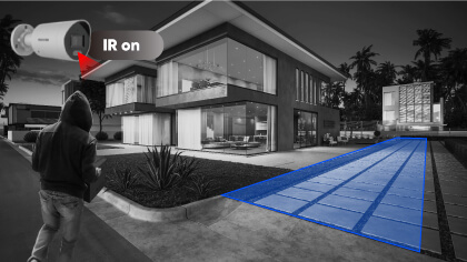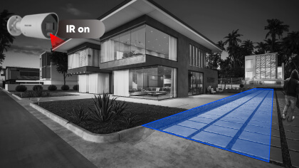 In final, Modul inteligent combina cele doua. Cand nu sunt detectate miscari, camera foloseste lumina IR. In momentul in care senzorii detecteaza miscare, lumina alba se aprinde automat, oferind astfel detalii color ale obiectului sau persoanei in miscare.