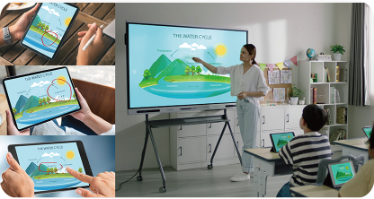 Interactiune in Timp Real: Elevii pot interactiona cu materialele direct de pe dispozitivele lor, adaugand comentarii sau desenand pe cursurile prezentate, ceea ce le imbunatateste concentrarea in timpul lectiilor.