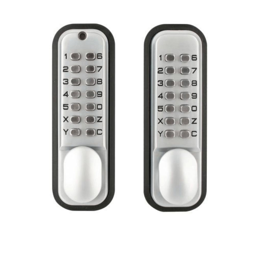 MM101SC este o incuietoare cu cod mecanic si zavor orizontal. Pachetul contine 2 tastaturi cu cifru si accesoriile acestora. Incuietoarea mecanica este o solutie ideala pentru usile cu deschidere spre interior sau exterior fie cu deschidere spre stanga sau dreapta. Ambele parti contin 14 butoane din care un buton de clear (C) si 13 pentru a forma codul de deschidere.