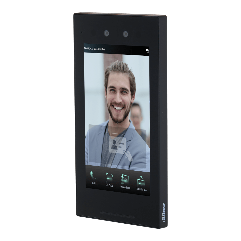 > LCD de 7" cu o rezoluție de 600 × 1024. > Cameră dublă HD de 2 MP. > Suportă 100.000 de utilizatori, 50.000 de fețe și 50.000 de carduri. > Recunoaște fețele de la 0,3 m până la 1,5 m distanță (0,98 ft-4,92 ft) cu o precizie de 99,9% și compară 1 față cu N fețe la viteza de 0,2 secunde/persoană. > Detectarea vieții este utilizată pentru a detecta tentativele de falsificare, cum ar fi utilizarea unei fotografii sau a unui videoclip pentru a obține acces. > Afișează informații text și imagini eliberate de centrul de management. > Oferă mai multe tipuri de alarme, cum ar fi constrângere, manipulare, urgență și alarme de la detectoare de uși. > Acceptă lăsarea de mesaje audio și video atunci când nimeni nu răspunde prin VTH. (Este necesar un card SD.) > Acceptă mai multe metode de deblocare, inclusiv parola, cardul IC și fața, și se deblochează de la distanță. > Deblochează ușa prin VTH, centru de management și aplicație. > Emite 1 canal 12 VDC și 700 mA pentru a furniza energie pentru modulul de control acces sau pentru cititorul de carduri. > Clasament IP65 (este necesar un etanșant de silicon pentru placa de montare încasată.)