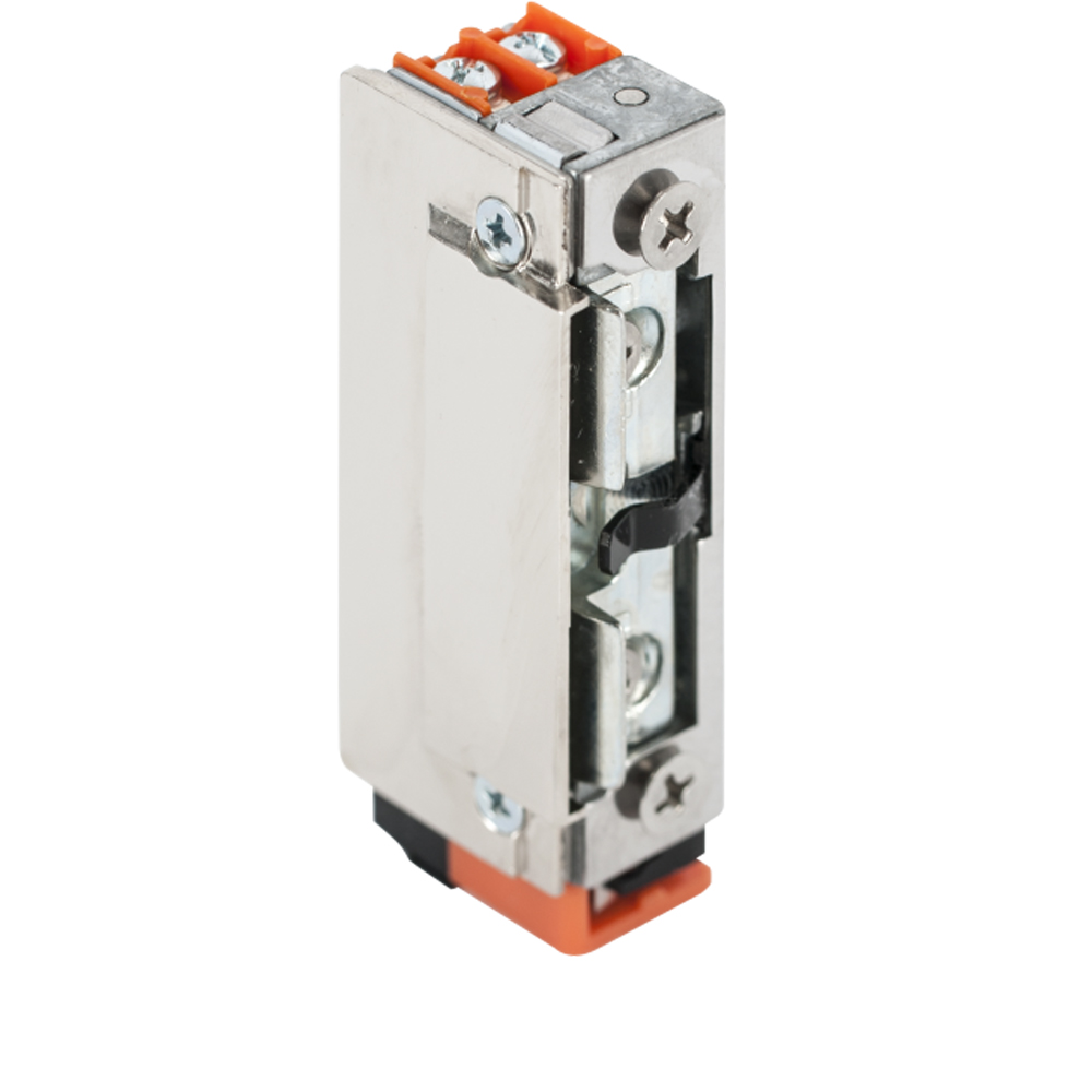 Alte functii: DORCAS-99NF305-512-TOP este o incuietoare de tip strike, fail safe,de dimensiuni reduse si forma simetrica. Avand zavorul radial, se preteaza pentru instalarea in tocuri de usa inguste.Particularitatea seriei 305 o reprezinta functia de monitorizare(NC-COM-NO). Aceasta functie permite integrarea facila a incuietorii in sistemele de alarma, acces, incendiu etc. Seria TOP permite instalarea facila, nefiind nevoie de o operatiune de frezare complexa in tocul usii.