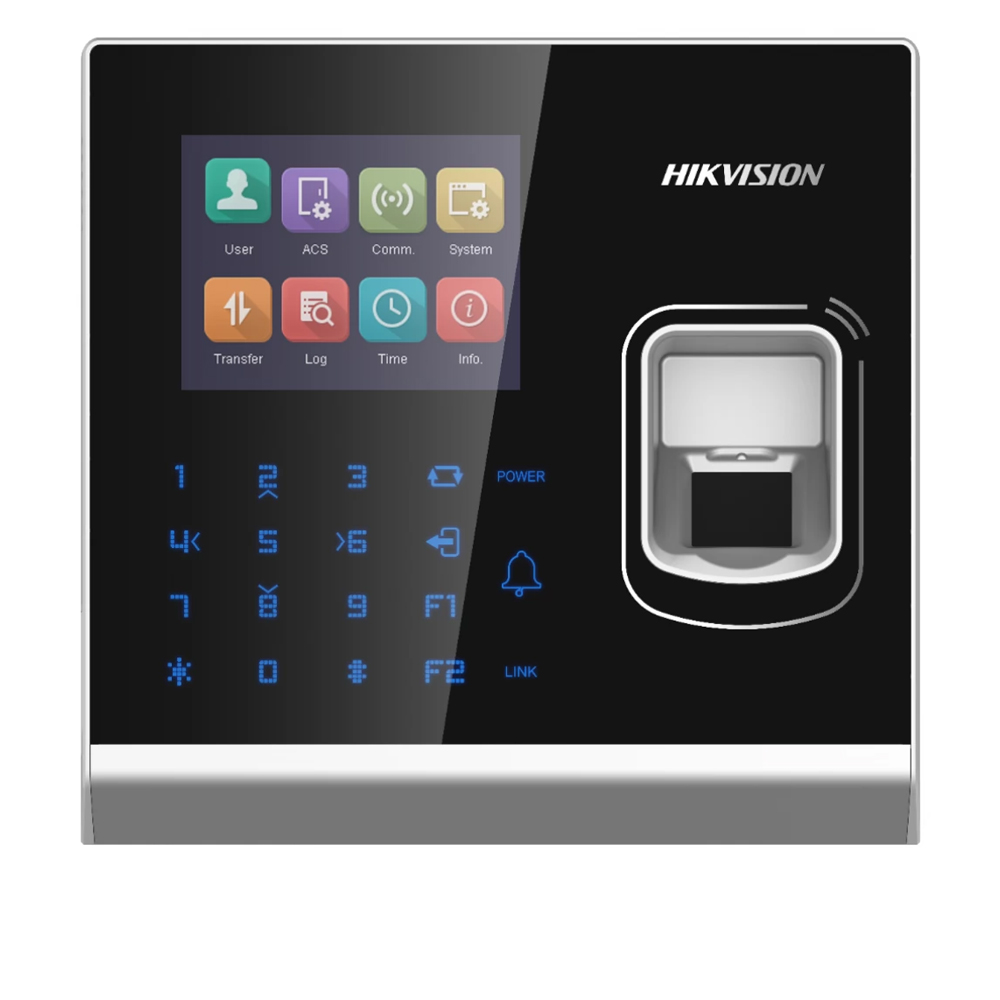 Cititor control access standalone cu cititor de amprenta Hikvision Pro Series DS-K1T201AMF, capacitate amprente: 5000, capacitate carduri Mifare: 100000, capacitate evenimente: 300000, distanta citire card: 0 la 5 cm suporta RS-485 and Wiegand (26/34), ecran LCD 2.8 inch, suporta ISUP5.0 protocol, comunicare via wired network (TCP/TP) si Wi-Fi, alimentare: 12 VDC/2 A