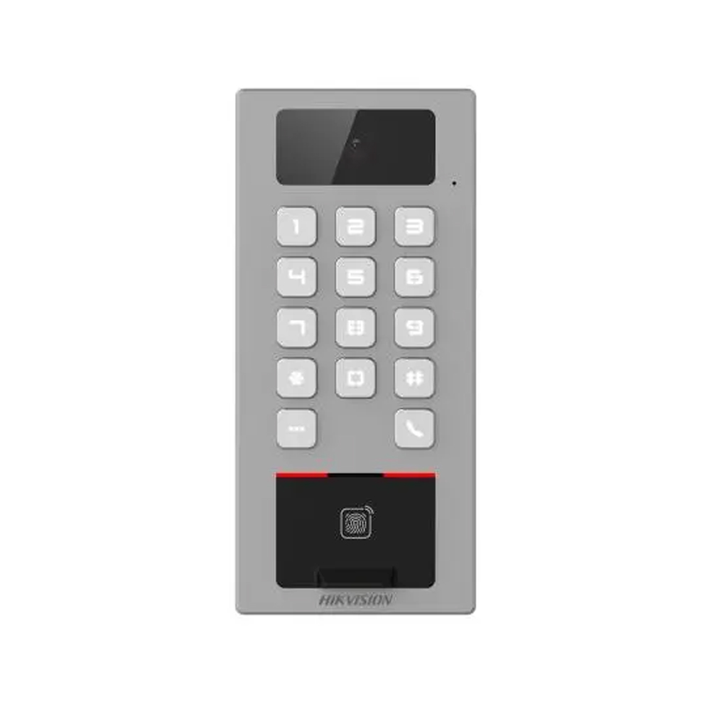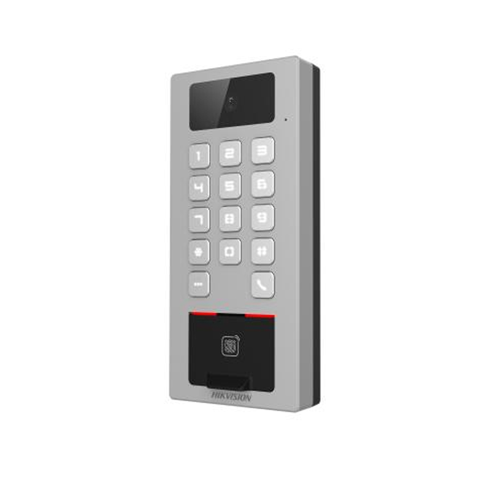  Gestionează funcțiile de control al accesului și interfon într-un singur dispozitiv  Protecții IP65 și IK09, precum și stabilitate sporită cu materiale din aliaj de zinc  Suportă multiple metode de autentificare (card, amprentă, PIN, etc.)  Control remot prin intermediul aplicației mobile Hik-Connect  Se conectează la controlerul de acces extern prin protocolul Wiegand  Interfon video prin protocolul SIP. Servere SIP suportate: Brekeke, miniSipServer, FreePBX, Asterisk, 3CX, ELASTIX și PBXware  Comunicare RS-485 pentru conectarea cititorului de carduri extern și pentru apelarea liftului