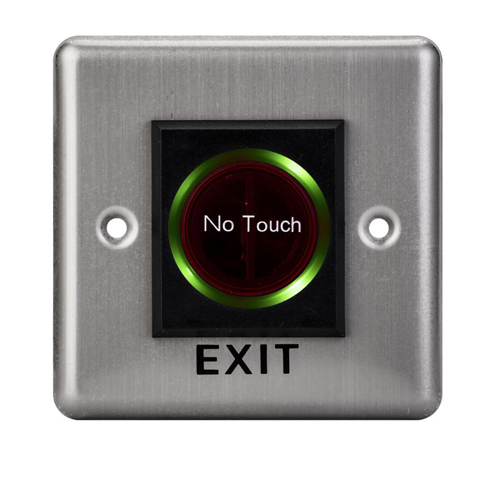 Buton de iesire cu infrarosu, incastrabil, ND-EB15-2;Iesire contact:NO/NC; Icon: No Touch; LED stare Bi-color: albastru- verde; Distanta actionare: 5-15cm; Dimensiuni: (L x W x H)86 x 86 x 25mm;