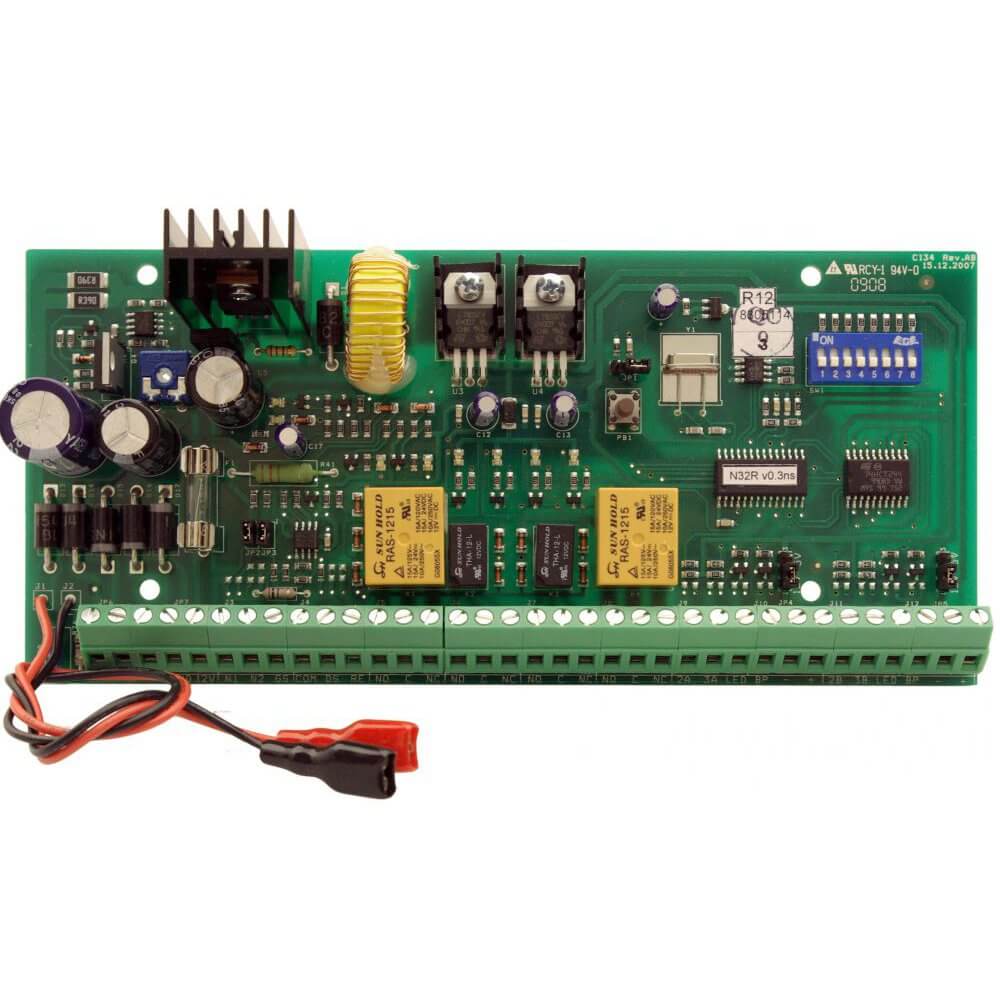 Cardax N32R este un modul control acces in retea pe o usa, cu dublu sens (controlata complet), prin cititor de cartela magnetica / proximitate, cu raportare de evenimente la unitatea centrala Cardax N32C. Acest sistem contine 3 relee de 12Vcc/1A, 1 releu 12Vcc/10A, 2 intrari pentru buton cerere acces si pentru sesizarea starii punctului (prin contact magnetic) si o sursa 12V/1.5A. Exista si versiune pentru turnicheti ( pe baza de comanda).