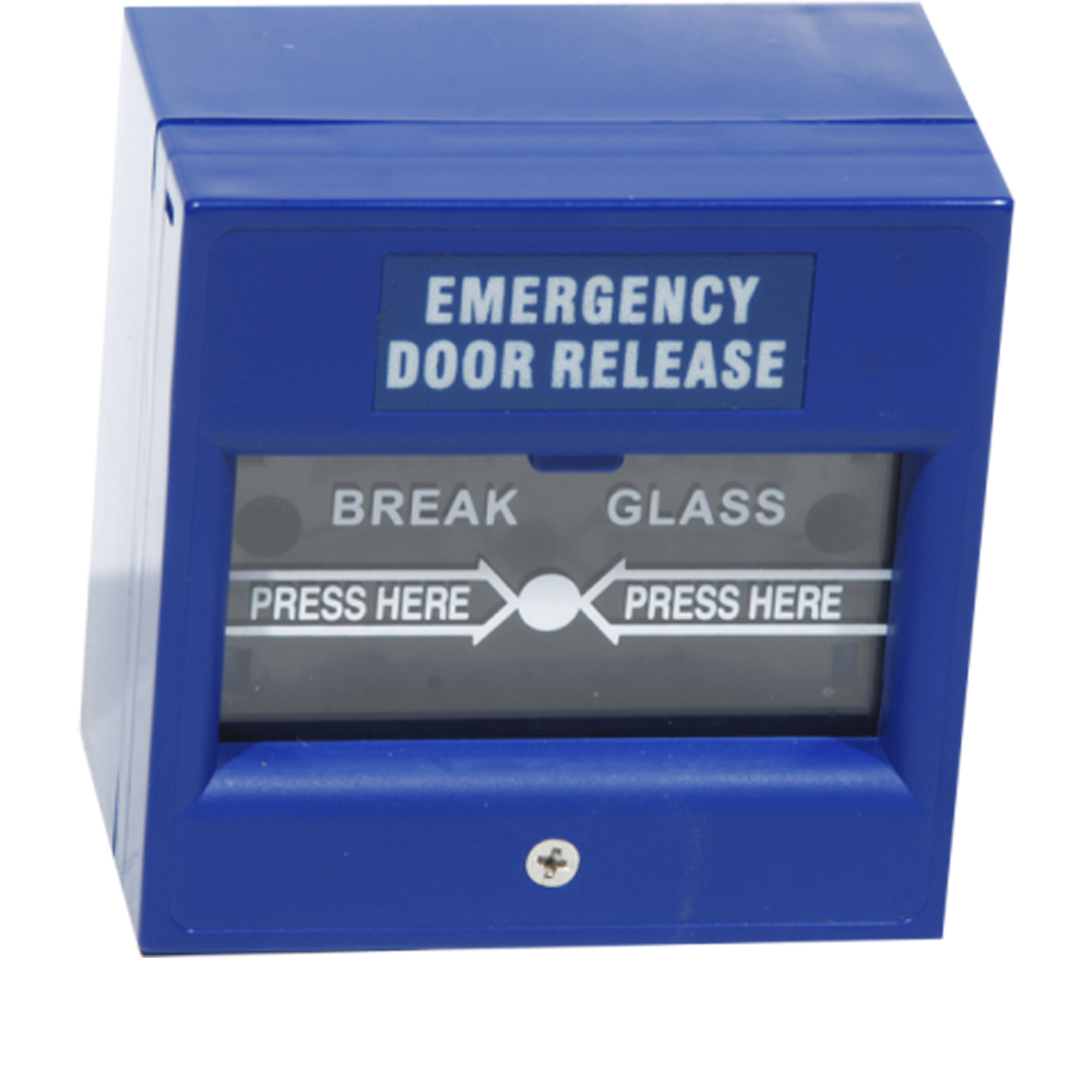 Buton aplicabil, din plastic, pentru ieşire de urgenţă (86x86mm) culoare albastră normal închis/normal deschis