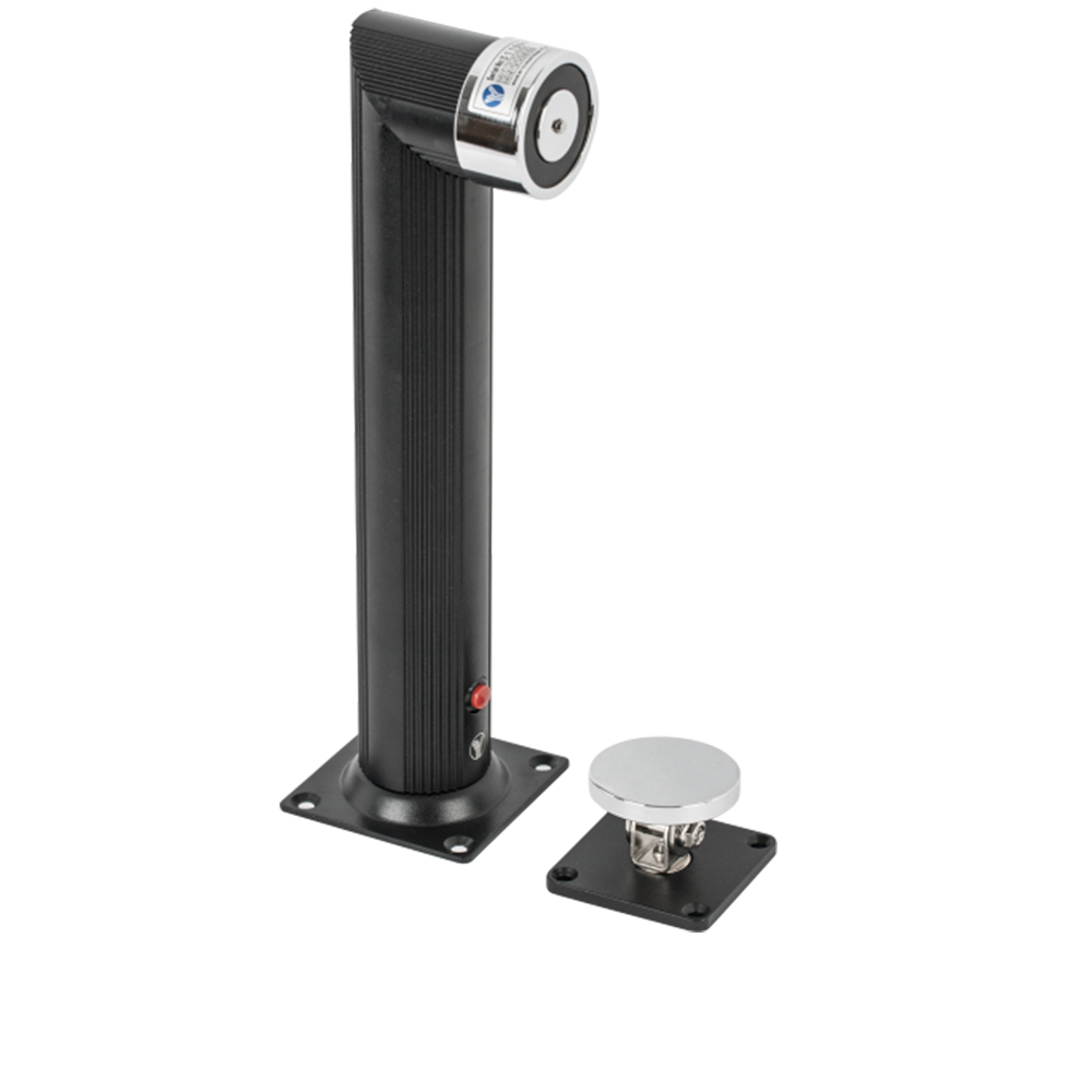 Electromagnet de retinere usa deschisa Retentie: 50kgf Consum: 140mA/12Vcc 70mA/24Vcc Dimensiuni: 80(L) x 80(l) x 300(H)mm Contraplaca: 65(H) x 65(l) x 55(A)mm Alte caracteristici: buton de deblocare manuala, montare pe perete sau podea, tensiune reglabila din jumper, protectie la supratensiune