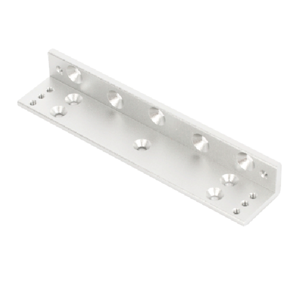 Suport in forma de L pentru montarea electromagnetilor de 110kgf Material: aluminiu anodizat Dimensiuni: 160(L) x 33(l) x 22(H)mm Aplicabilitate: usi cu toc ingust si deschidere spre exterior, lemn, metal, PVC