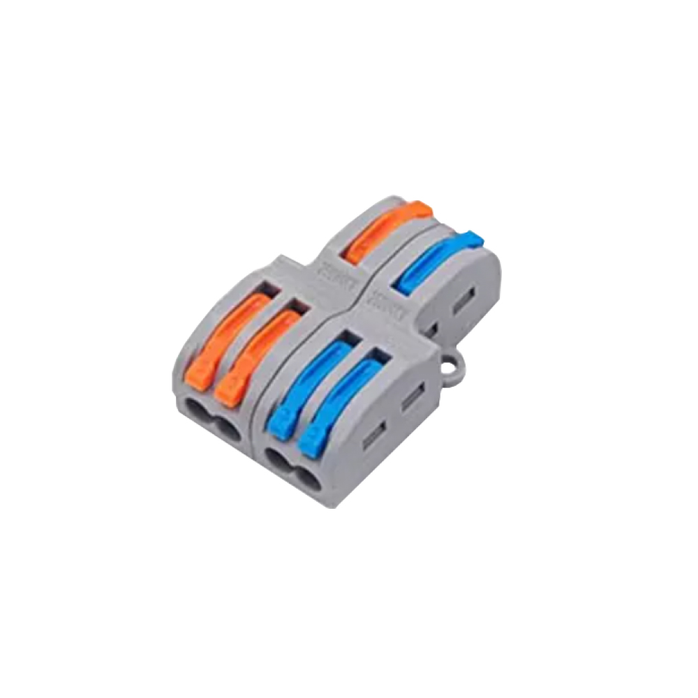 Conectori de cabluri cu functie de multiplicator, 2 x 1 la 2, max. 4mm². Numarul total de potentiale: 2 Nr. puncte de conectare: 2 x 1 la 2 Sectiune cablu: 0.08~2.5mm2 cablu plin 0.08~4mm2 cablu litat Tensiune nominală: 250V Supratensiune: 600V Curent nominal: 32A Sistem de fixare in doza Dimensiuni: 25.5(L) x 40(l) x 15(H)mm