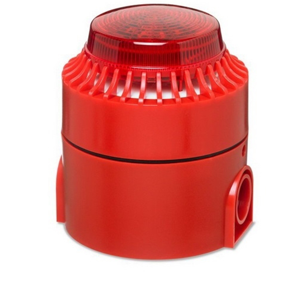 Sirena de incendiu de interior cu stroboscop si carcasa rosie, multiton, tensiune alimentare 18 - 28 V DC, curent consumat de sirena 12,5 - 37,4 mA / 24 V DC, curent consumat de flash 16 mA / 24 VDC, grad de protectie IP44, masa 278g