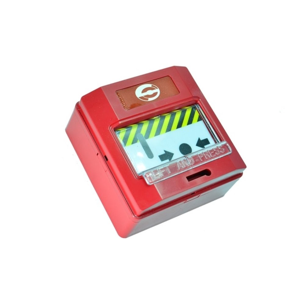 Buton de incendiu cu geam de plastic, capac rosu, LED semnalizare stare de alarma, reset cu cheie, cablare pe 2 fire, instalare simpla, conform standard EN54 part 11, utilizabil la sistemele conventionale de antiincendiu, dimensiuni (H, W, D) 92, 92, 48 mm, impedanta in alarma 680 Ohm - jumper taiat, masa 125g