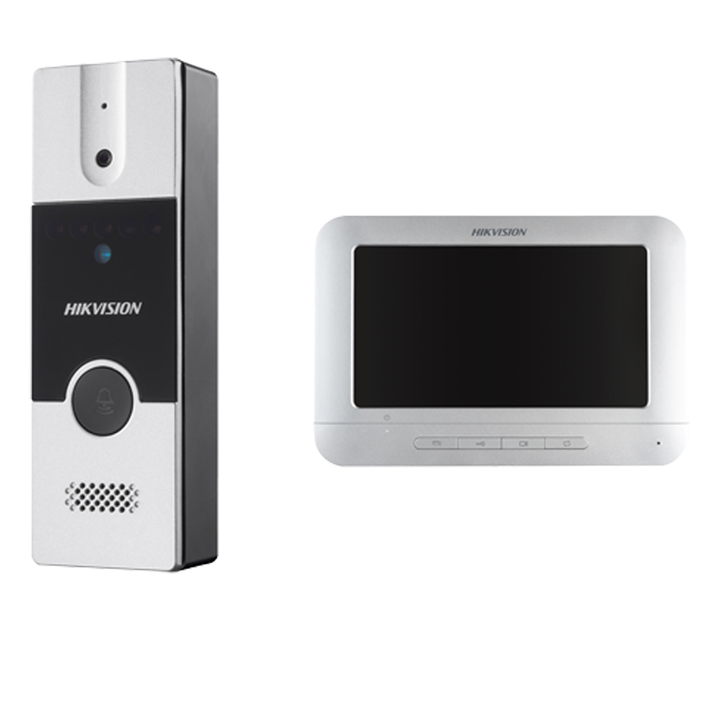 -1 post interior DS-KH2200 : 7”display color TFT, rezolutie 800x480 pixeli, include microfon, difuzor puternic, cablare pe 4 fire (intrare video de 1 canal, intrare / ieșire audio de 1 canal, +12V, GND), alimentare 12Vcc, dimensiuni 195.8 mm × 132.8 mm × 18.39 mm; pana la 2 unitati de interior in sistem; accepta 1 camera analogica; nu face poza la apel.