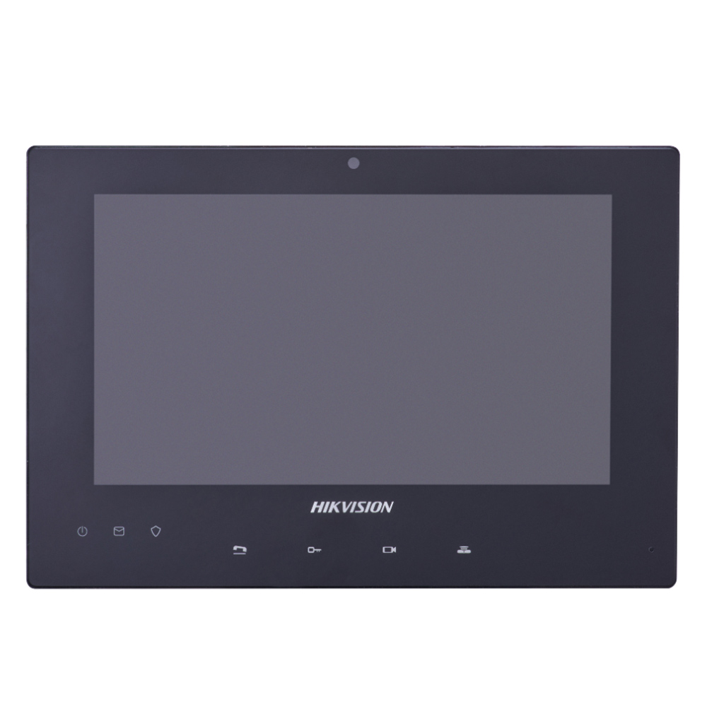 Monitor de interior pe 2 fire Hikvision, DS-KH8340-TCE2; montaj pe 2fire; 7-Inch Colorful TFT LCD, Capacitive Touch Screen, Touch Bu tton;Display resolution: 1024x600, Two-wire interface, Wall mounting;Supports monitoring the door station and the external IP camera; Poweredby DS-KAD709;