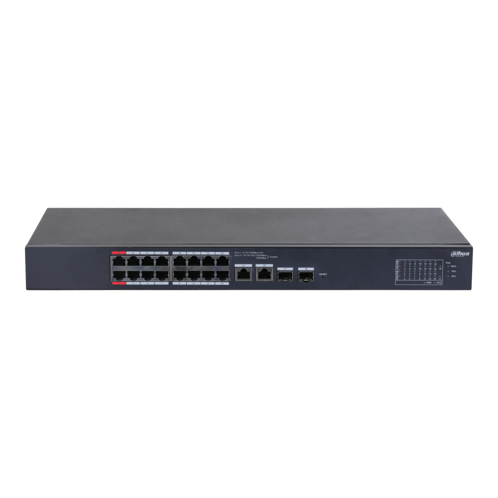 Switch 16x PoE cu management, 2xRJ45Gbit Uplink, 2xSFP, 190W, Watchdog - Dahua CS4218-16ET-190