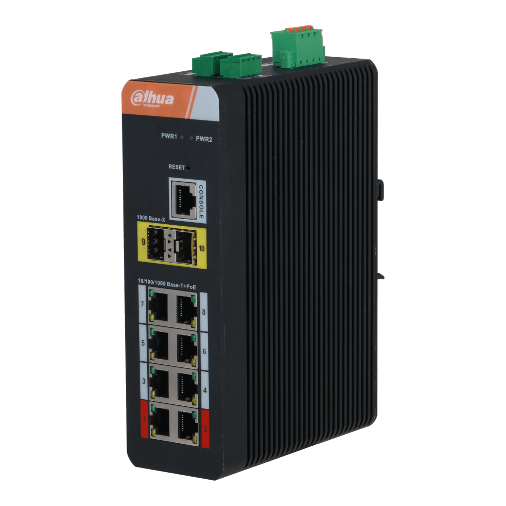 Switch 8x RJ45 PoE Gigabit, 2x SFP gigabit, 20 Gbps, 1 consola - Dahua IS4210-8GT-120