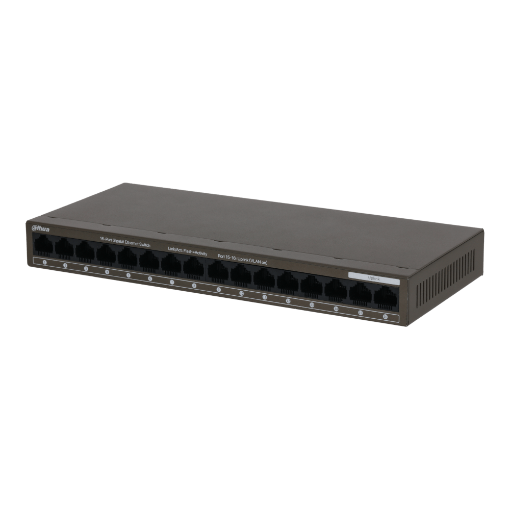 /Sonor, Ret & IT/Echipamente retea/Dahua/Switch-uri si injectoare/Switch-uri fara PoE/16 porturi/Toate Gigabit/Fara SFP/PFS3016-16GT-M