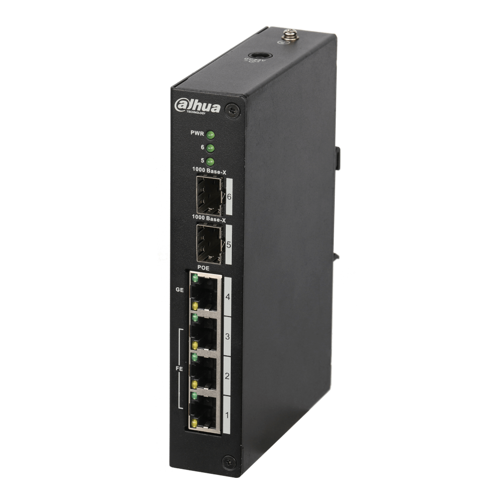 Switch PoE 4 porturi 100 Mbps+2 SFP, 120W, industrial, neadministrabil - Dahua PFS3206-4P-120