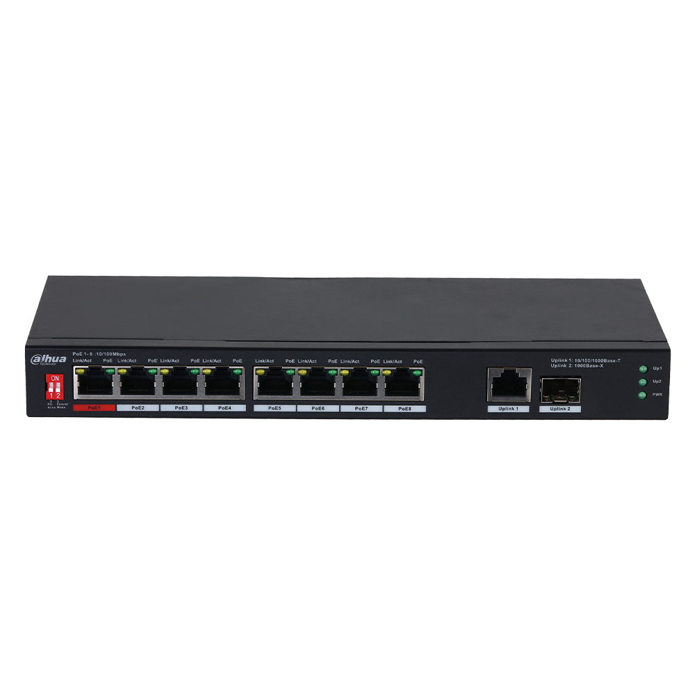 Switch 8x PoE 100Mbps + 1 Uplink RJ45 Gigabit + SFP, WatchDog, 96W - Dahua PFS3110-8ET1GT1GF-96