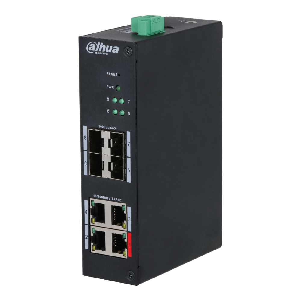 Switch PoE Dahua 4 × 10/100 Mbps PoE ports and 4 × SFP 1000 Mbps, Buget 96W
