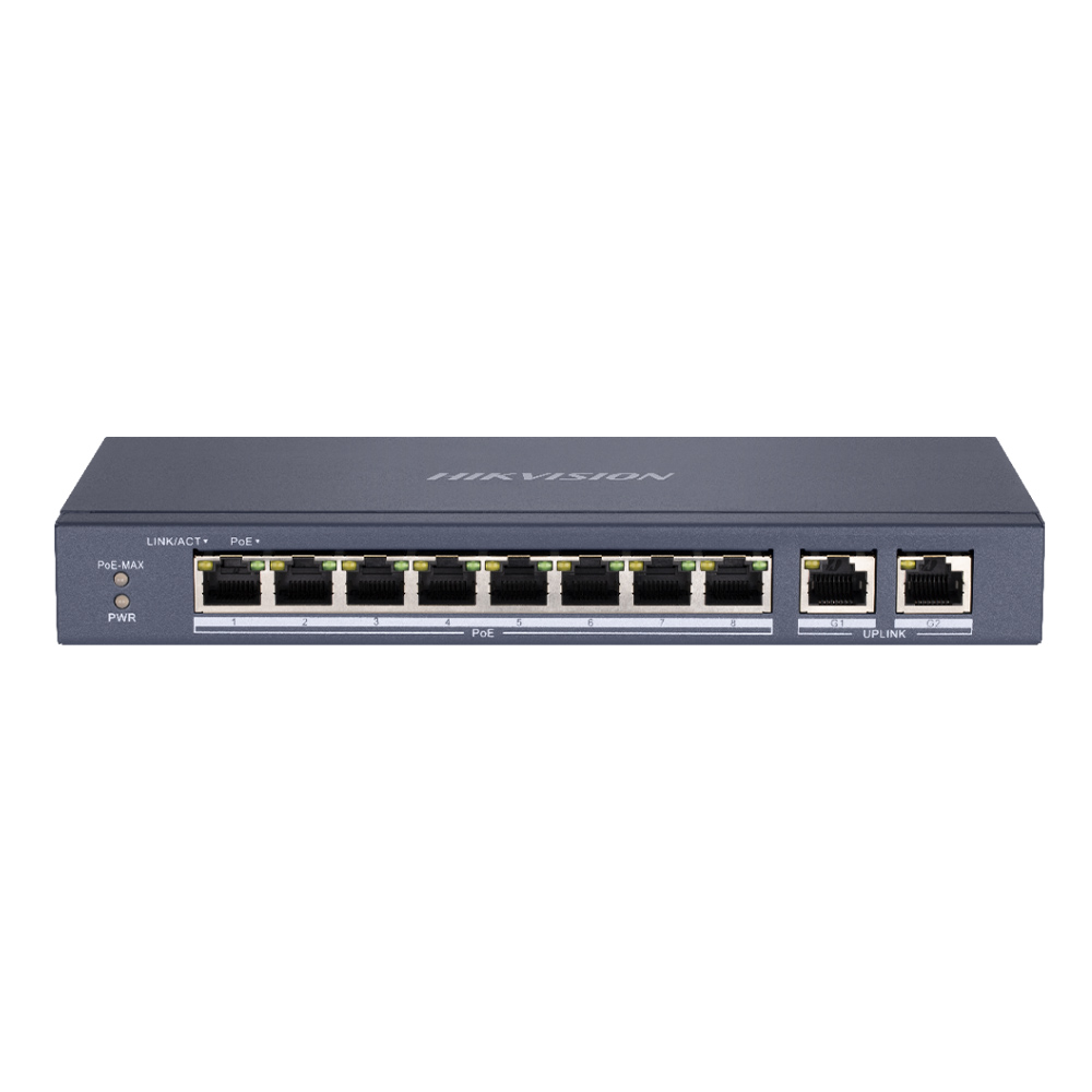 Switch 8 PoE + 2 Uplink Gigabit, 60W - HikVision DS-3E0310P-E/M