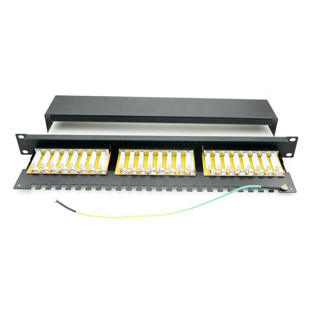 Patch panel blank keystone ecranat 1U, 24 porturi, pentru retele Gigabit si 10G.