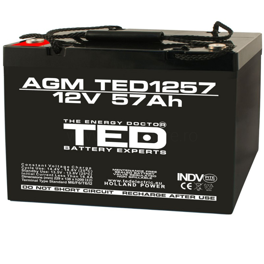 Acumulator AGM VRLA 12V 57A GEL Deep Cycle - TED Electric TED1257
