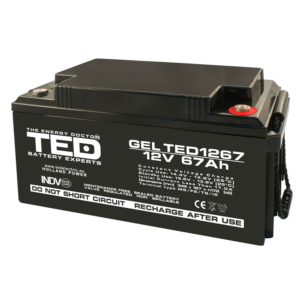 Acumulator gel 12V 67Ah, Terminal M6 - TED Electric AGMTED1267