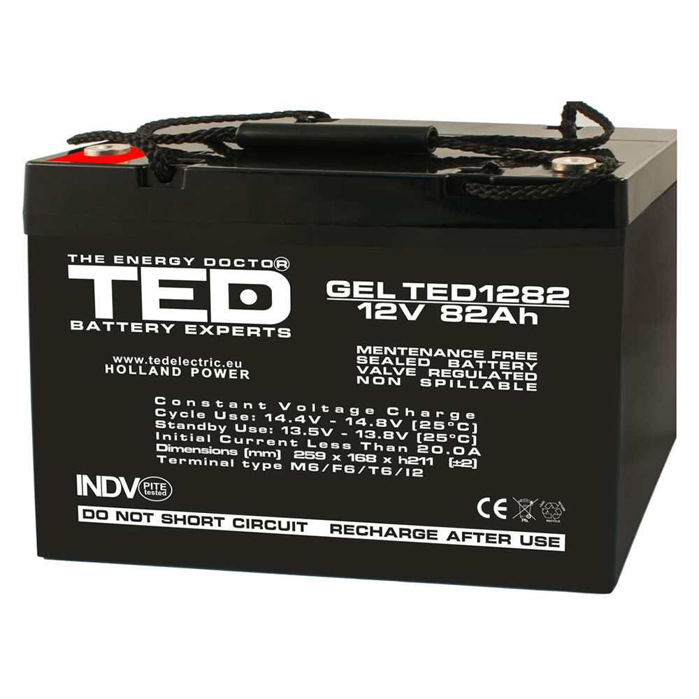 Acumulator gel 12V 82Ah, Terminal M6 - TED Electric AGMTED1282