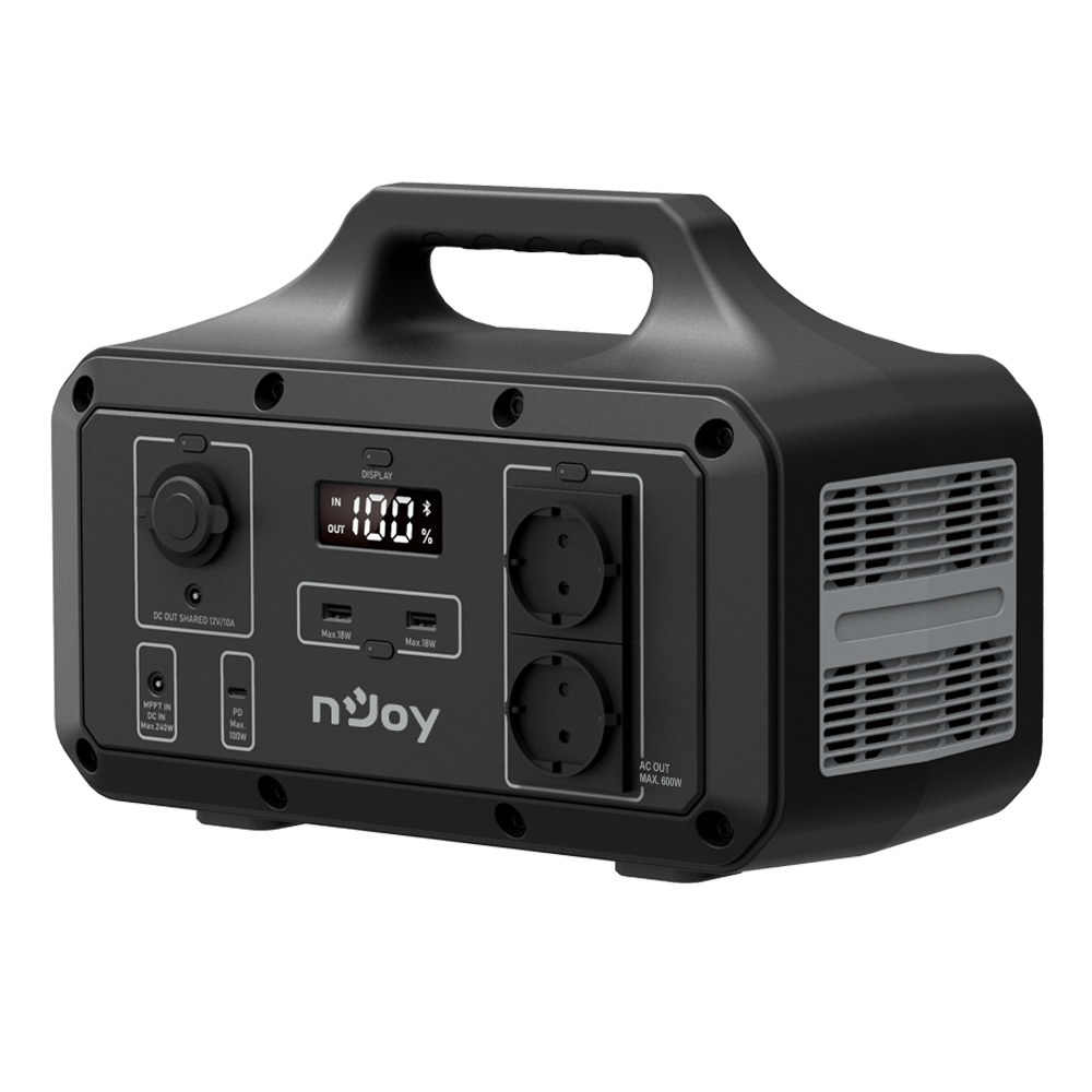 • NJoy Power Base 600 este un acumulator portabil cu capacitate de 511Wh, alimentat cu baterie Li-ion NCM, destinat alimentării dispozitivelor în aplicații de supraveghere, camping, outdoor sau situații de urgență. Oferă 8 porturi de ieșire diverse și suport pentru încărcare din mai multe surse.