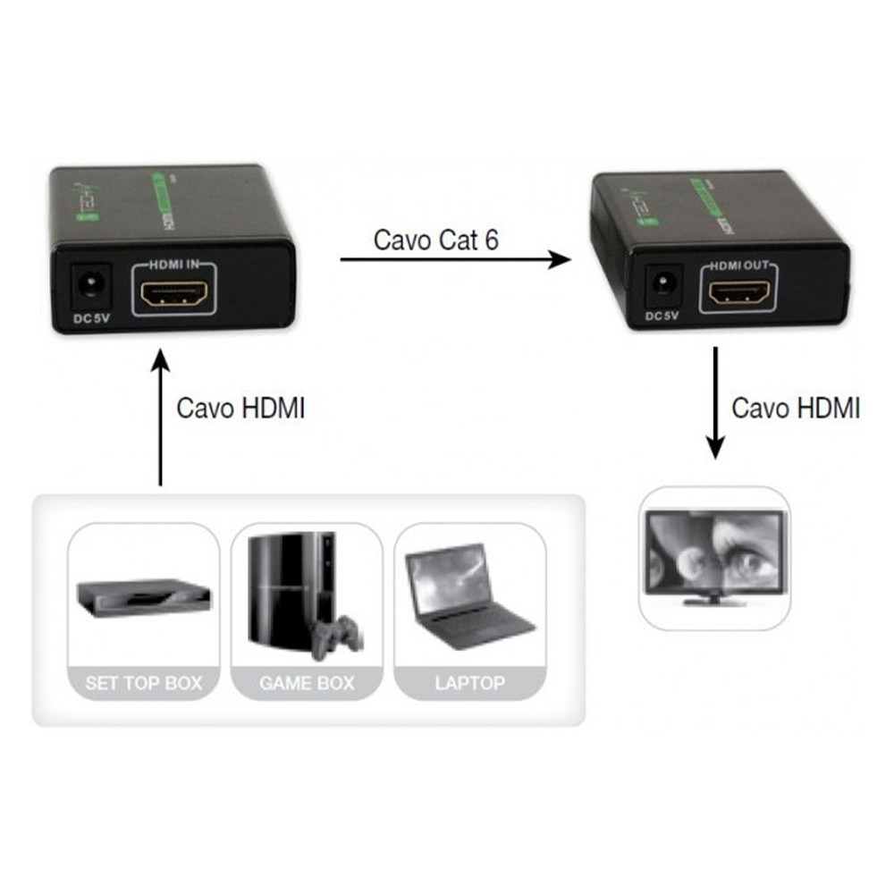 • Extender HDMI pentru a extinde distantele de transmisie folosind cabluri de cupru Cat. 5e / 6 / 6A / 7