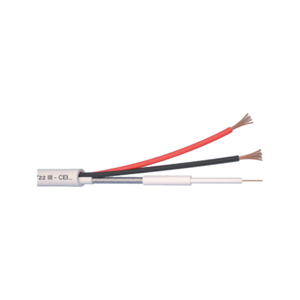 - Cablu micro-coaxial Cupru masiv, plus alimentare 2 x 0,8 mm, Cupru. Disponibil in role de 100 si 500 metri. Necesita mufe BNC RG174