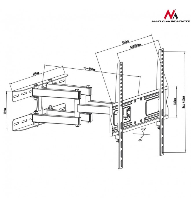 Suport TV de perete, brat reglabil, LCD / LED, 26 - 55 inch, Negru - Maclean MC-760