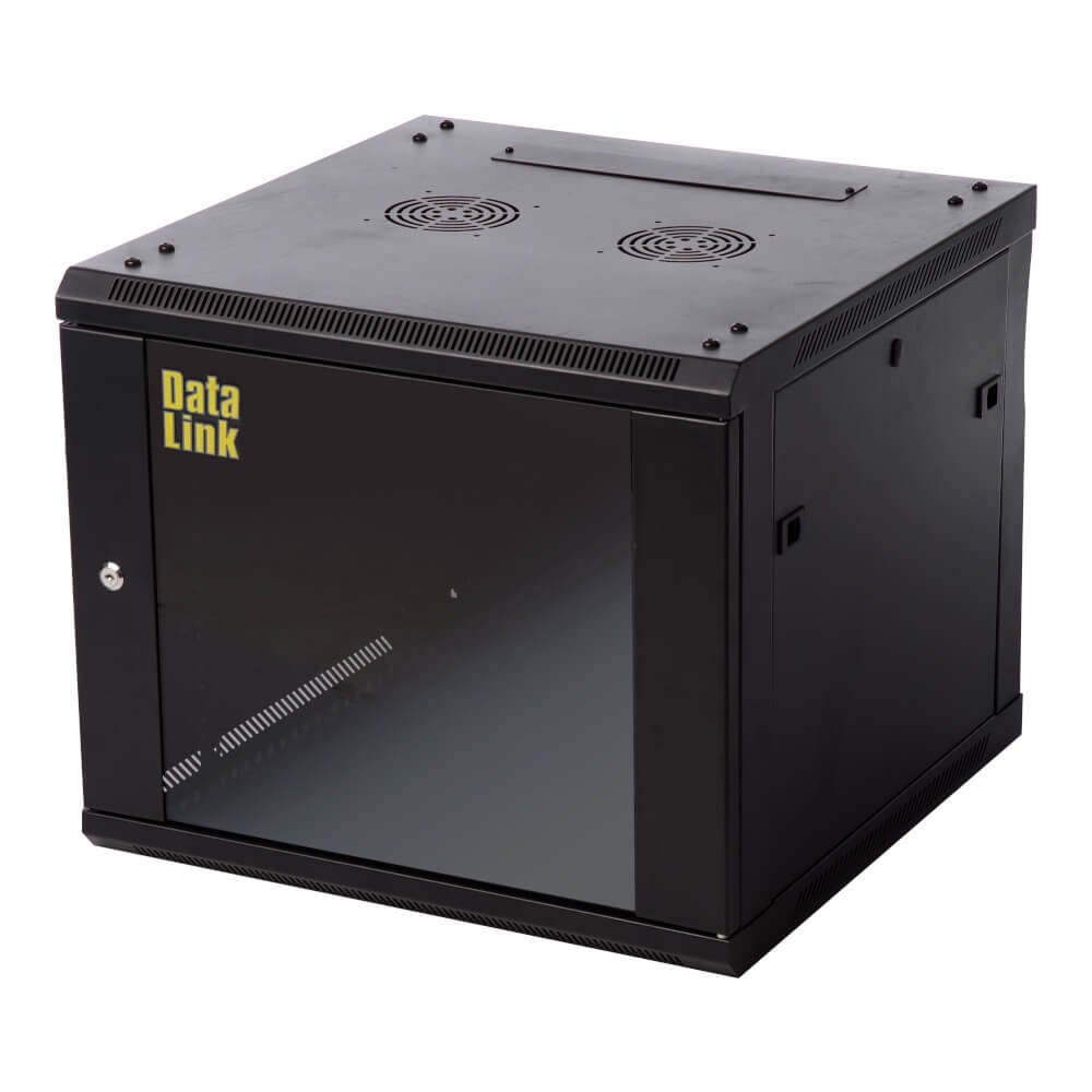 Rack 12U, montare perete, neasamblat, negru, usa sticla - DataLink RACK-12U-600x600N
