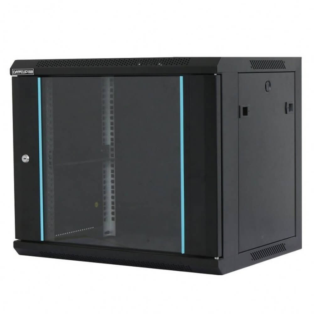 Montare pe perete, usa din sticla, panouri laterale detasabile si securizate , asamblat, culoare negru RAL 9004, DATEUP