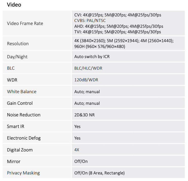 DAHUA HAC-HDW1801M este o camera de supraveghere video HDCVI, HDTVI, AHD, ce are o rezolutie maxima de 8 Megapixeli, oferita de un senzor de imagine 1/2.7 inch CMOS. Camera poate fi instalata