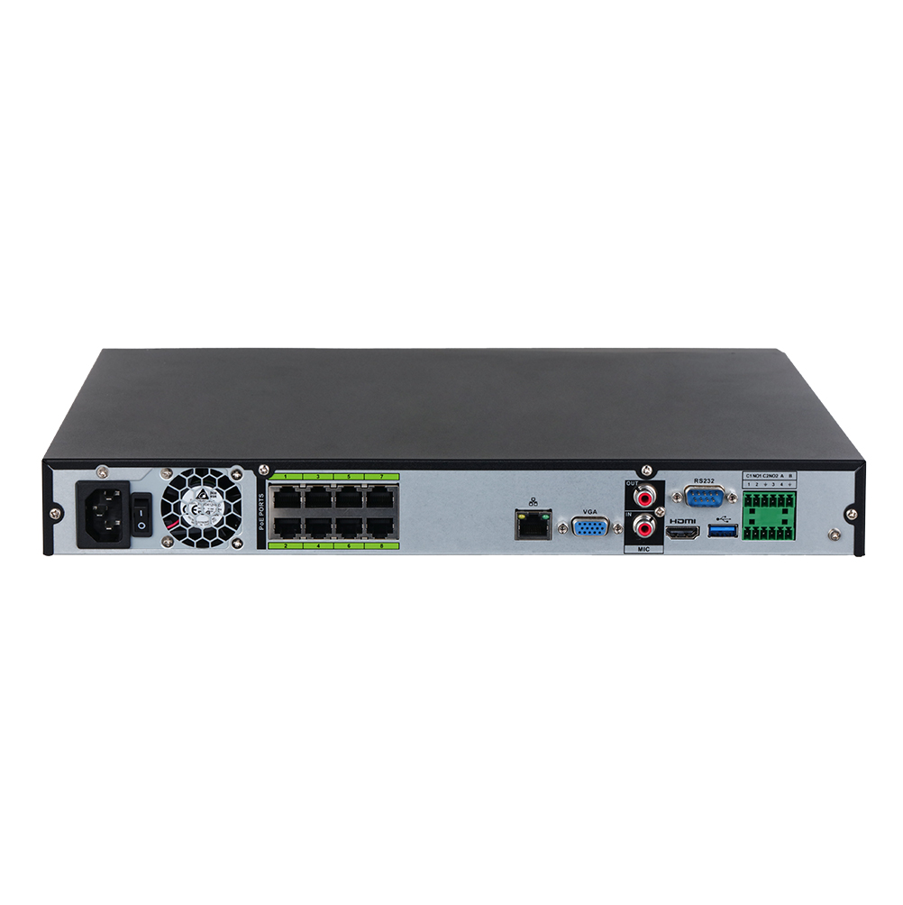 DAHUA NVR5208-8P-EI este un NVR cu 8 canale video, ce poate inregistra imagini provenite de la camere IP de supraveghere, ce au o rezolutie maxima de 12 Megapixeli, in limita a 384 MB/secunda, pe intreg sistemul.