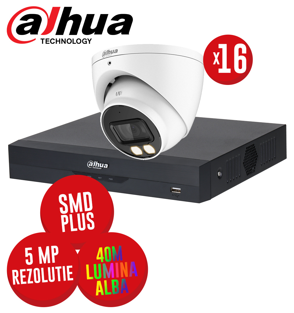 Sistemul de supraveghere video "KIT DVR 16CH. 8MP SI 16 CAMERE 5MP LED 40M MICROFON - KIT930", contine DOAR urmatoarele echipamente: