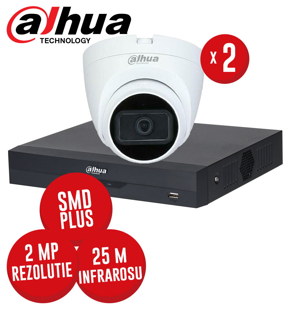 KIT DVR 4 canale 5MP-N SMD+, 2 camere 2MP dome, IR 25m - KIT543