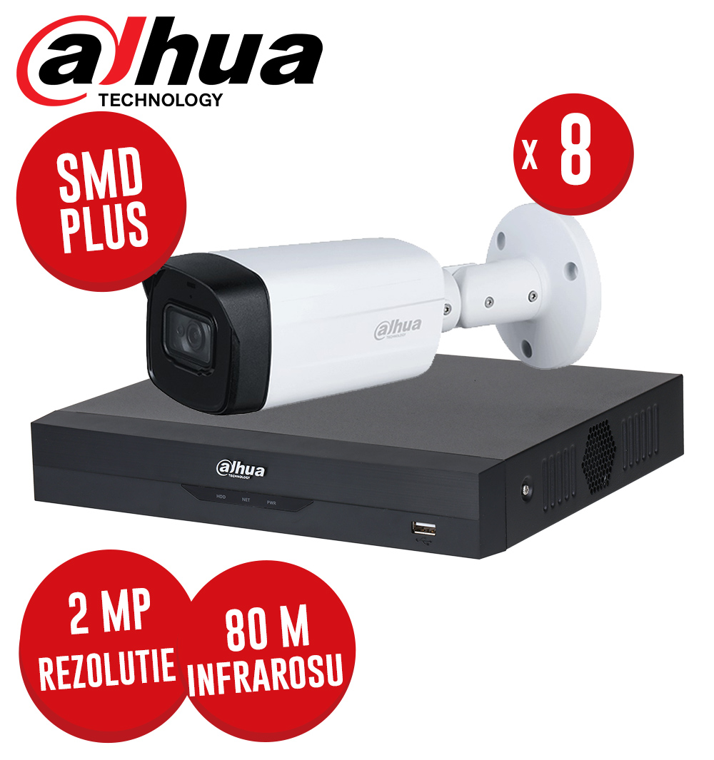 Kit DVR 8 canale 5MP, 8 camere 2 MP, IR 80m, fara accesorii, SMD+ - KIT310