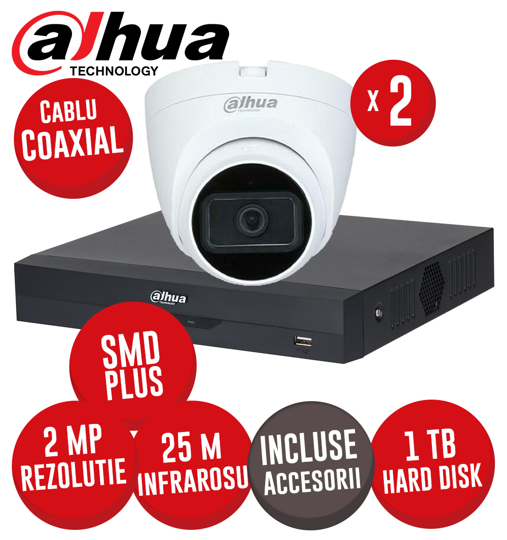 Sistem DVR 4 canale 5MP-N SMD+, 2 camere 2MP dome, IR 25m, HDD 1TB si accesorii, coaxial - KIT547