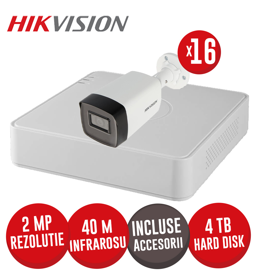 Sistem DVR 16ch. 2MP-N AcuSense, 16 camere 2MP, IR 40m cu audio si HDD, accesorii incluse - KIT662